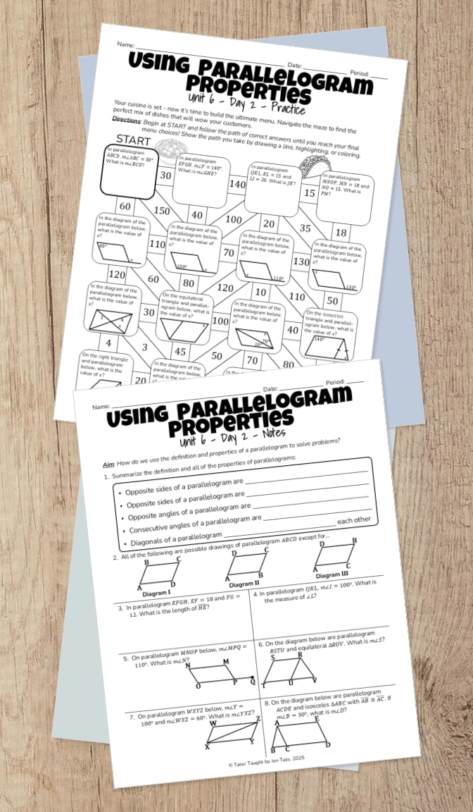 Includes print-and-go guided notes, activity, teacher overview, and full answer keys - perfect for saving time and confidently teaching about parallelograms!